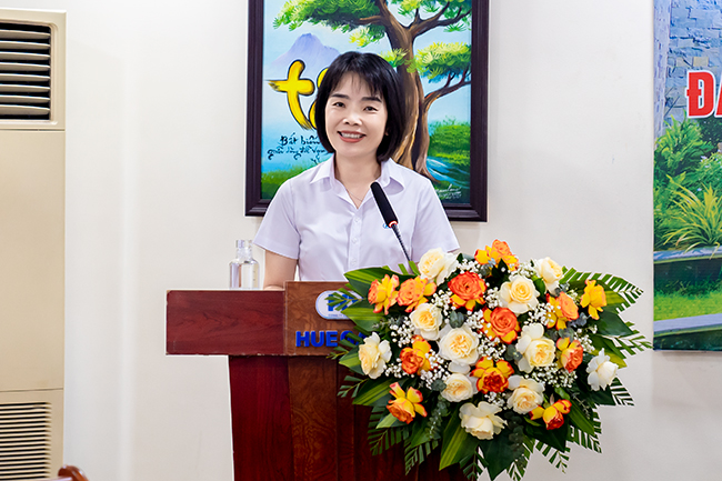 Bà Nguyễn Hồng Liên – Thành viên HĐQT, Tổng Giám đốc Dệt May Huế báo cáo tại Đại hội