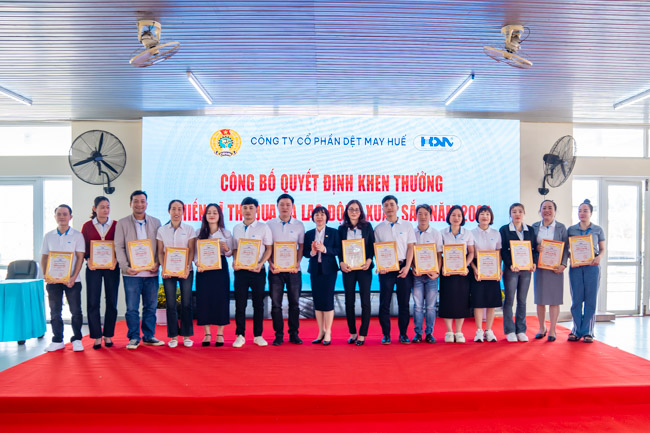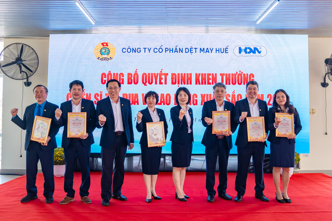 Với những nỗ lực đó, năm 2024, Công ty CP Dệt May Huế được đánh giá và khen thưởng trên nhiều lĩnh vực: Đảng bộ Khối Cơ quan và Doanh nghiệp tỉnh Thừa Thiên Huế khen tặng Đảng bộ hoàn thành xuất sắc nhiệm vụ năm 2024, Bộ Lao động Thương binh Xã hội, Tổng Liên đoàn công nhận danh hiệu “Doanh nghiệp vì người lao động” lần thứ 6 liên tiếp. Ngoài ra, Tổng Liên đoàn Lao động Việt Nam trao cờ đơn vị xuất sắc trong phong trào công nhân viên chức và hoạt động công đoàn năm 2024, UBND TP Huế khen thưởng doanh nghiệp có thành tích xuất sắc trong hoạt động xuất nhập khẩu cùng giải Nhì tập thể tại Ngày hội Lao động Sáng tạo lần IV năm 2024 từ Công đoàn ngành.