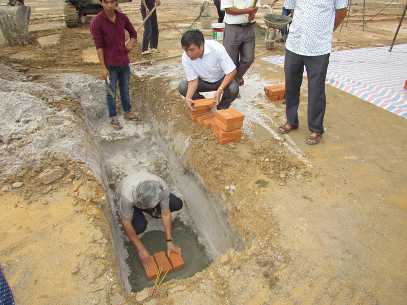 Ông Nguyễn Bá Quang – Chủ tịch HĐQT, Tổng Giám đốc Công ty đặt những viên gạch đầu tiên xây dựng Nhà máy May 4