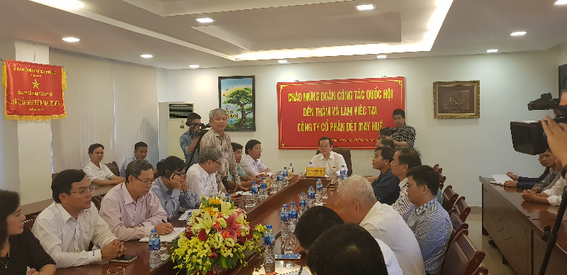 Chiều ngày 19/4/2018, Công ty Cổ phần Dệt May Huế đã đón tiếp đoàn Đại biểu Quốc hội đến thăm và làm việc tại Công ty. Dẫn đoàn Đại biểu Quốc hội đến thăm và làm việc là đồng chí Phùng Quốc Hiển – Uỷ viên Trung ương Đảng, Phó Chủ tịch Quốc hội, đồng chí Vũ Hồng Thanh – Ủy viên Trung ương Đảng, Trưởng ban Kinh tế Trung ương và các đồng chí các Ban có liên quan;