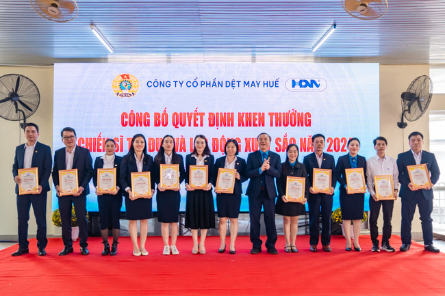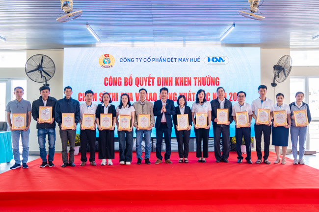 Ông Nguyễn Tiến Hậu – Bí thư Đảng ủy, Chủ tịch Công đoàn Công ty cho biết: “Năm 2024, Công ty Cổ phần Dệt May Huế vượt qua nhiều thách thức, duy trì việc làm, thu nhập ổn định cho người lao động và hoàn thành vượt mức kế hoạch đề ra. Các hoạt động chăm lo đời sống được Công đoàn Công ty quan tâm, nổi bật với “Tết Sum vầy” và Phiên chợ Nghĩa tình hỗ trợ 10.000 suất quà Tết, 145 lao động khó khăn nhận quà giá trị, 5 chuyến xe nghĩa tình đưa hơn 200 CBCNV về quê, tổ chức sinh nhật cho 4.300 lao động, và khen thưởng hơn 1.300 con CBCNV có thành tích học tập xuất sắc. Phong trào thi đua đạt nhiều thành tích ấn tượng: 16 sáng kiến đạt giải tại Ngày hội Lao động Sáng tạo, các giải thưởng trong Tháng Công nhân, Tháng ATVSLĐ, và Hội diễn Văn nghệ ngành. Công đoàn được khen thưởng vì học tập và làm theo tư tưởng Hồ Chí Minh, Chủ tịch Công đoàn vinh dự nhận Giải thưởng Nguyễn Văn Linh, cùng nhiều hoạt động tôn vinh lao động nữ và hỗ trợ kịp thời người lao động bị ảnh hưởng bởi thiên tai.” Thỏa ước lao động tập thể năm 2025 với nhiều điều khoản có lợi hơn cho người lao động đã được thông qua, thể hiện rõ cam kết của công ty trong việc đặt con người làm trung tâm.