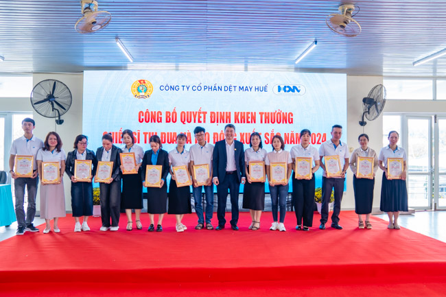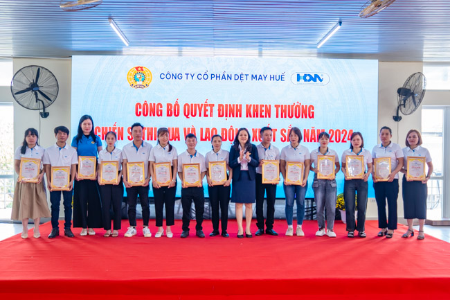 Với những nỗ lực đó, năm 2024, Công ty CP Dệt May Huế được đánh giá và khen thưởng trên nhiều lĩnh vực: Đảng bộ Khối Cơ quan và Doanh nghiệp tỉnh Thừa Thiên Huế khen tặng Đảng bộ hoàn thành xuất sắc nhiệm vụ năm 2024, Bộ Lao động Thương binh Xã hội, Tổng Liên đoàn công nhận danh hiệu “Doanh nghiệp vì người lao động” lần thứ 6 liên tiếp. Ngoài ra, Tổng Liên đoàn Lao động Việt Nam trao cờ đơn vị xuất sắc trong phong trào công nhân viên chức và hoạt động công đoàn năm 2024, UBND TP Huế khen thưởng doanh nghiệp có thành tích xuất sắc trong hoạt động xuất nhập khẩu cùng giải Nhì tập thể tại Ngày hội Lao động Sáng tạo lần IV năm 2024 từ Công đoàn ngành.