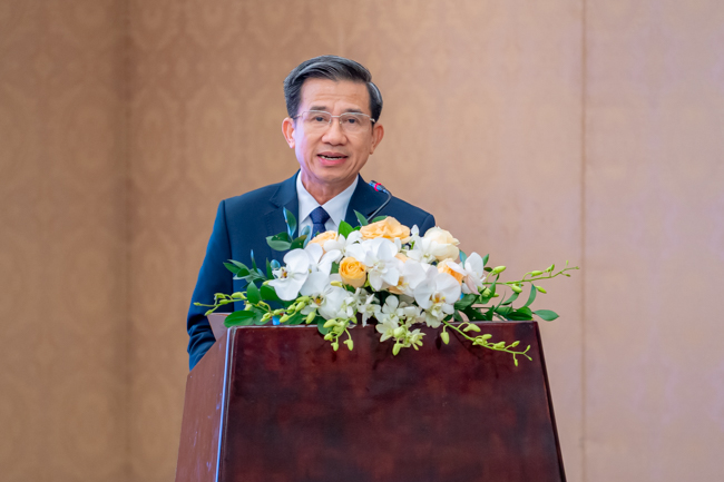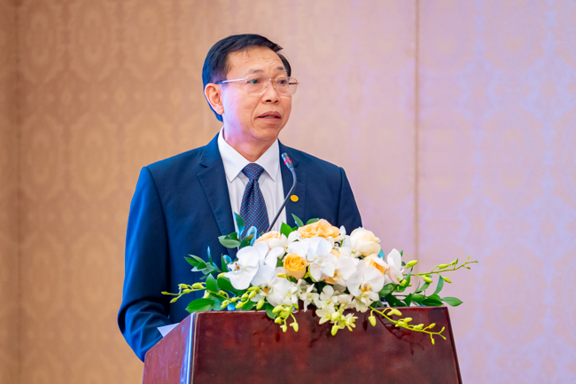 Ông Lê Tiến Trường, Chủ tịch HĐQT Tập đoàn Dệt May Việt Nam, phát biểu tại Hội nghị