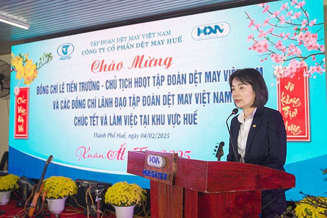 Phát biểu tại buổi gặp mặt, bà Nguyễn Hồng Liên – Tổng Giám đốc Công ty Cổ phần Dệt May Huế đại diện các đơn vị ở khu vực Huế báo cáo tình hình hoạt động hoạch sản xuất – kinh doanh của các đơn vị trong quý I/2025 và cam kết sẽ triển khai đồng bộ các giải pháp để hoàn thành và hoàn thành vượt mức kế hoạch SXKD năm 2025 Tập đoàn giao, lập thành tích chào mừng kỷ niệm 30 năm thành lập Tập đoàn DMVN và chào mừng Đại hội Đảng các cấp, tiến tới Đại hội Đảng toàn quốc lần thứ XVI./.
