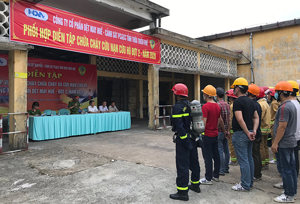 PHỐI HỢP DIỄN TẬP CHỮA CHÁY VÀ CỨU NẠN CỨU HỘ CÔNG TY CỔ PHẦN DỆT MAY HUẾ ĐỢT II/2020.