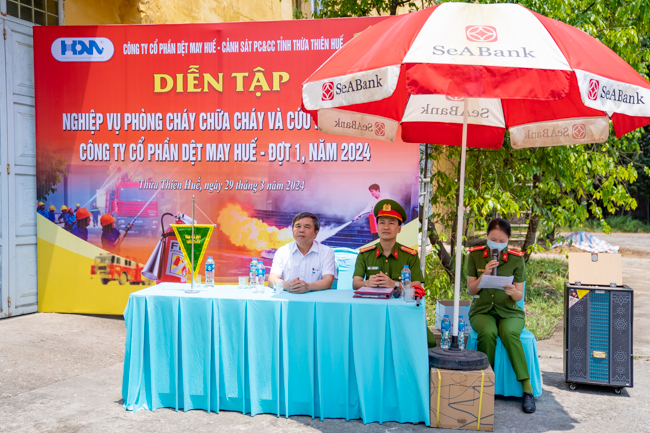 Sáng ngày 29/3/2024, Công ty CP Dệt May Huế (Công ty) đã phối hợp với Phòng Cảnh sát PCCC tỉnh Thừa Thiên Huế diễn tập Nghiệp vụ Phòng cháy Chữa cháy và Cứu nạn Cứu hộ (PCCC&CNCH) đợt I năm 2024.